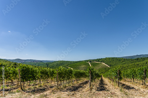 © Emanuele Mazzoni, Fototapeta premium A vineyard in Tuscany, Italy