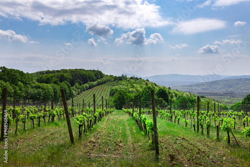 © Sergei, Naklejka premium A vineyard with a cloudy sky in the background