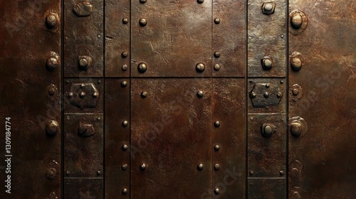 Fototapeta premium A vintage brown industrial setting with aged metal panels and weathered textures.