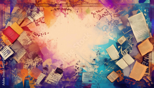© Arda ALTAY, Fototapeta premium A vintage collage with empty paper space artfully combines old papers and grunge paint splashes, evoking a sense of nostalgia. Copy space.