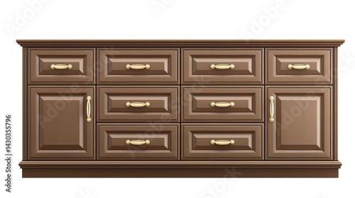© bblyoy, Fototapeta premium A vintage dresser with brass handles. Isolated on white background.
