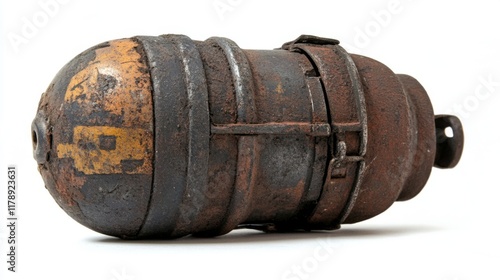 Fototapeta premium A vintage hand grenade showcasing timeworn design. Its rusty surface tells a...