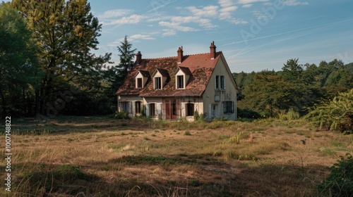 Obraz premium A vintage home surrounded by greenery, ideal for rustic or countryside-themed...