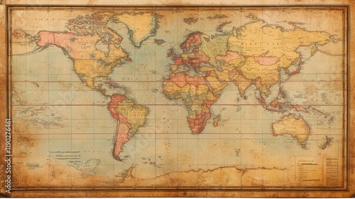 © somchai20162516, Obraz premium A vintage map with worn edges, subtle texture, and earthy tones