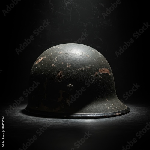 Fototapeta premium A Vintage Military Helmet Captured in Dramatic Lighting, Symbolizing History and Courage