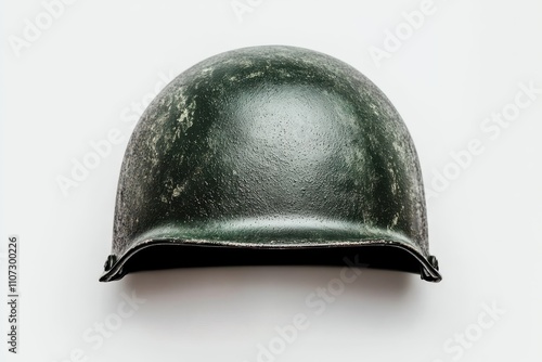 © Wahyu, Fototapeta premium A Vintage Military Helmet Displaying Signs of Use and History on a Clean White Background