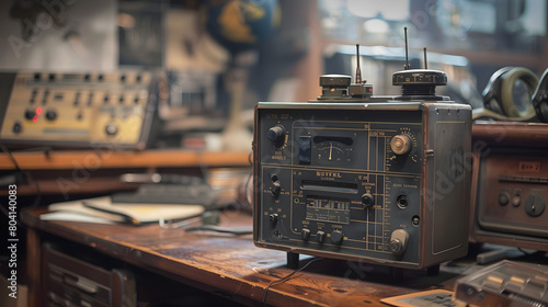 Fototapeta premium A vintage military radio set on an old desk.