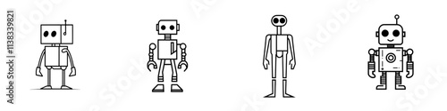 Fototapeta premium A vintage robot featuring claw arms, antennas, and a boxy design, embodying a classic sci-fi aesthetic with mechanical charm, illustrated in a sketch engraving style using generative AI, presented as