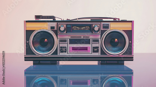 © MSTKolpana, Fototapeta premium A vintage silver boombox with large speakers and cassette player