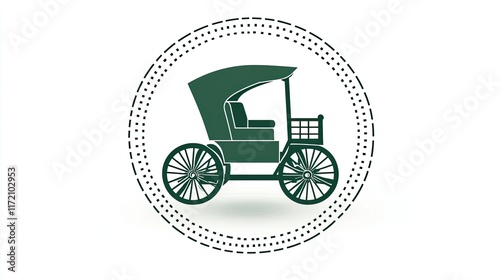 Fototapeta premium A vintage-style illustration of a horse-drawn carriage in a circular design.