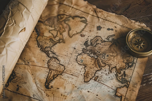 © Arniya, Obraz premium A vintage style map of Columbus' voyage showing Columbus' route across the Atlantic