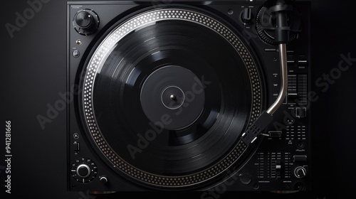 Fototapeta premium A vintage-style turntable with a record on top, ideal for retro-themed designs or nostalgic projects