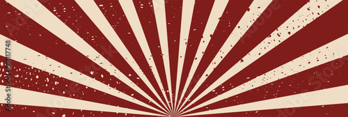 Fototapeta premium A vintage sunburst background with distressed red and beige rays, perfect for...