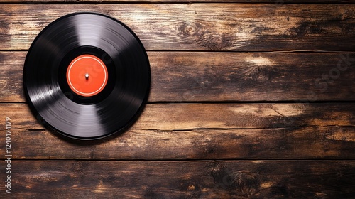 Obraz premium A vintage vinyl record on an old wooden table, representing the nostalgic...