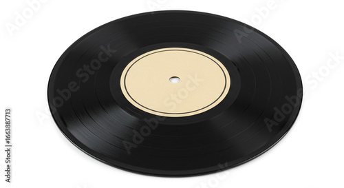 © Iram, Obraz premium A vinyl record with a tan label in the center on a white background in a studio shot for music lovers