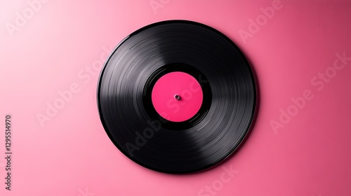 Fototapeta premium A vinyl record with dark grooves set against a bold pink background, embodying a retro vintage music design aesthetic
