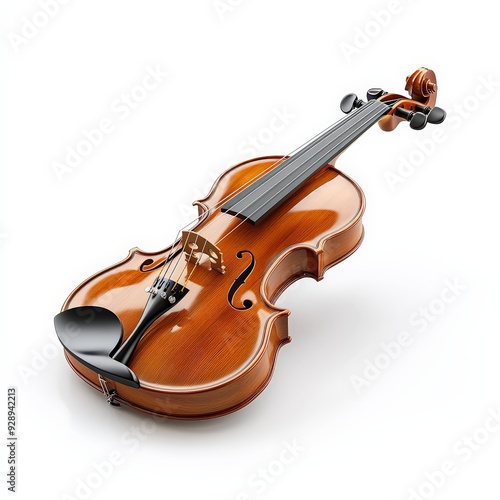 Fototapeta premium A violin, classical music instrument, 3D rendering, polished wood with strings, isolated on white background