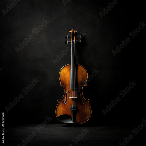 © อัสนัย แก้วบุญเรือง, Fototapeta premium A violin on a black background, showcasing its elegant wooden curves and classic string design, representing the art and sound of classical music