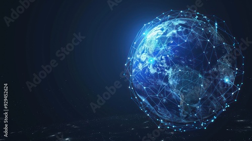 © nurul, Obraz premium A virtual blue planet with a blue circle around it