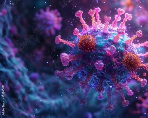 Fototapeta premium A virus is shown in a purple and pink color