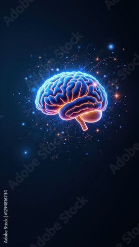 © Tameem, Fototapeta premium A visual metaphor for artificial general intelligence featuring a human brain with digital sparkles.