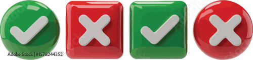 © Zullah, Obraz premium A visual representation of green check marks and red x marks in round and square shapes on white