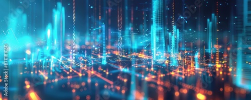 © patungkead, Obraz premium A visual representation of interconnected digital links glowing in blue and cyan tones, symbolizing a futuristic and ethereal network.