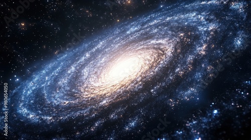 © Pornnapa, Naklejka premium A visualization of the Milky Way galaxy from above, showing its spiral arms and central bulge filled with stars and dust