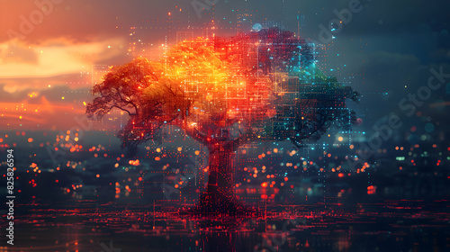 Naklejka premium A visually appealing tree diagram illustrating hierarchical structures, with...