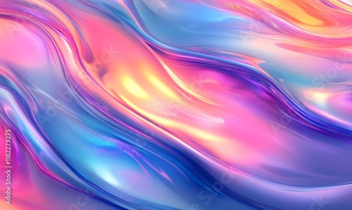 © dewpra, Obraz premium A visually captivating design with holographic iridescent stripes and fluid color gradients