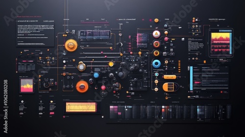 © Natchooda, Fototapeta premium A visually engaging timeline highlighting the evolution of video editing software tools, perfect for showcasing post-production advancements.