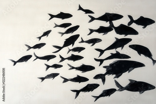 Fototapeta premium A visually striking depiction of a school of fish in vibrant movement,...
