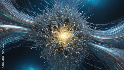 © isay4am, Obraz premium A visually stunning digital piece depicting an explosion of light and metallic shards, capturing a moment of intense energy and movement, perfect for backgrounds or sci-fi themed projects