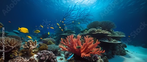 © RobinsonIcious, Fototapeta premium A vivid coral reef bustling with life and colors inviting curiosity and exploration of underwater ecosystems thriving in oceans