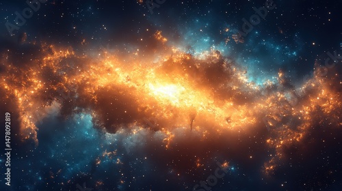 © iam, Fototapeta premium A vivid cosmic nebula display of swirling colors.