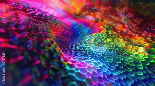 © kashif, Obraz premium A vivid digital hexagon abstract background, reminiscent of a psychedelic trip, with colors swirling and blending seamlessly.