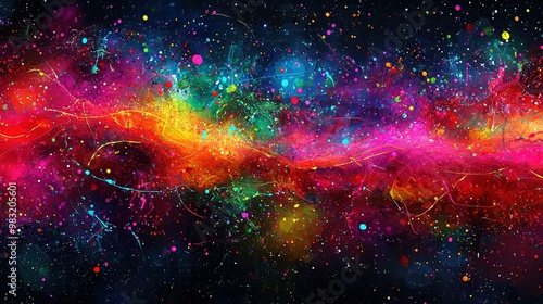 © Sonya, Obraz premium A vivid expanse adorned with diverse shades of paint and vibrant embellishments on a dark canvas