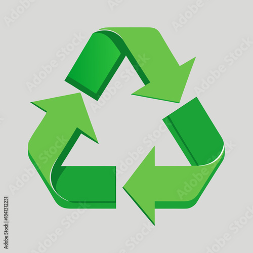 © Benxiumo, Fototapeta premium A vivid green recycling symbol with a three dimensional appearance is isolated on a light gray background representing ecological practices and sustainability