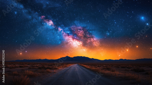 © tong2530, Fototapeta premium A vivid Milky Way stretching across a dark, cloudless night sky over a desert landscape