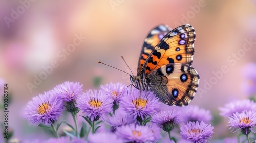 Fototapeta premium A vivid purple bloom with a radiant yellow heart, encircled by delicately...