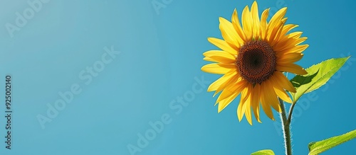Obraz premium A vivid sunflower set against a bright blue sky is shown in the copy space image