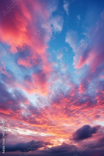 Fototapeta premium A vivid sunset sky with pink, blue, and yellow colors