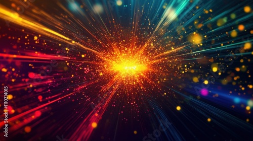 Naklejka premium A vivid visualization of abstract, multi-colored sparks converging to form a unified, glowing explosion on a dark background