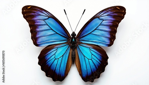 © junet, Fototapeta premium A vividly colored butterfly with striking blue and brown wings, set against a plain white background.