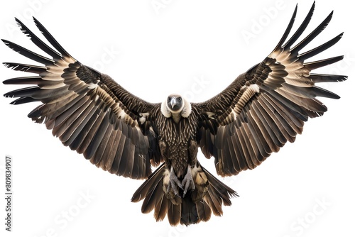 Naklejka premium A vulture with wings spread, intimidating presence, isolated on white