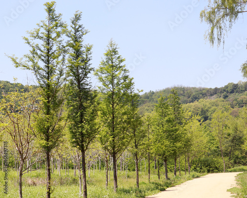© Su Young Moon, Obraz premium A walk in a park lined with trees.