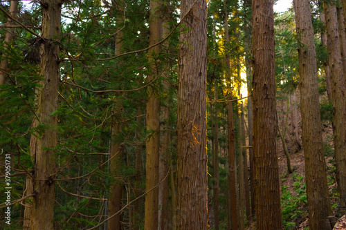 Naklejka premium A walk with pine tree view to Jigokudani Hot Spring Korakukan at Yamanouchi in Nagano, Japan.