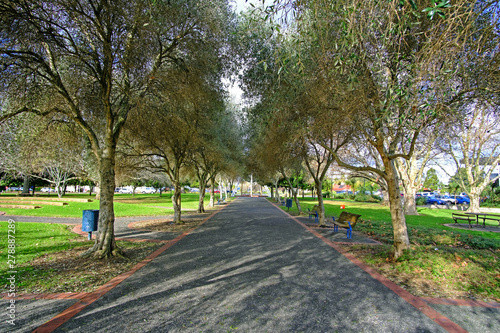 © ManHin, Fototapeta premium A Walking track inside a park in auckland