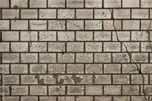 Fototapeta premium A wall of dirty, moldy, scratched white brick.