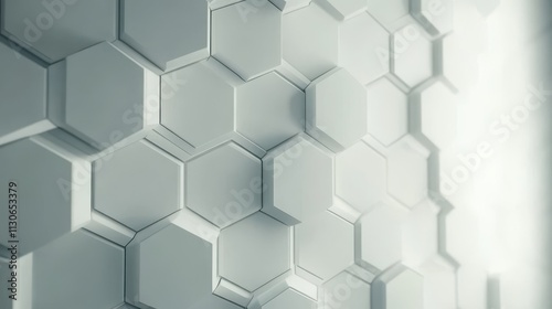 © ZeeZaa, Fototapeta premium A wall of hexagonal shapes in white